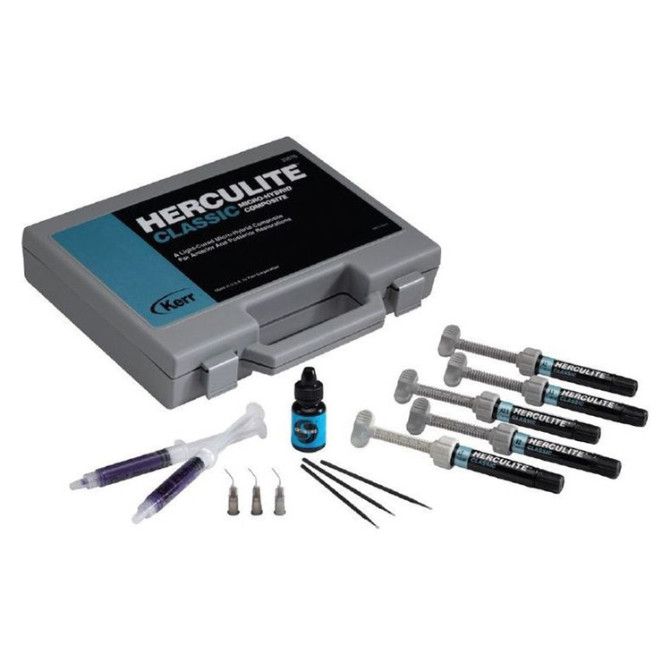 مشخصات و ویژگی کیت کامپوزیت هرکولایت مقاومت بالا در برابر سایش درخشش و صافی طولانی مدت میانگین اندازه ذرات 0.6 میکرون ظاهر طبیعی زیبایی فوق العاده سیستم فیلر منحصر به فرد که باعث کمتر شدن شرینکیج و در نتیجه کاهش فشار و حساسیت بالقوه روی دندانها می شود مقاومت عالی در برابر شکستگی عالی و مقاومت فشاری فوق العاده در دراز مدت هندلینگ آسان با ویسکوزیته قابل قبول و انطباق مارژینال فوق العاده رادیو اپسیته بالا پایداری رنگ قابل توجه