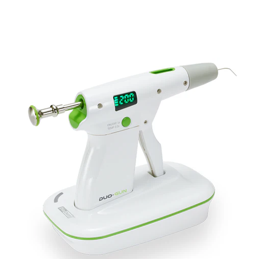 آبچوراتور دیادنت DiaDent مدل Duo GUN که یکی از باکیفیت ترین دستگاه ابچوراتور دندانپزشکی ساخت کره جنوبی موجود در بازار ایران است و باتوجه به داشتن طراحی تفنگی، میتوان میزان خروجی گوتاپرکا به داخل کانال را به راحتی کنترل نمود.