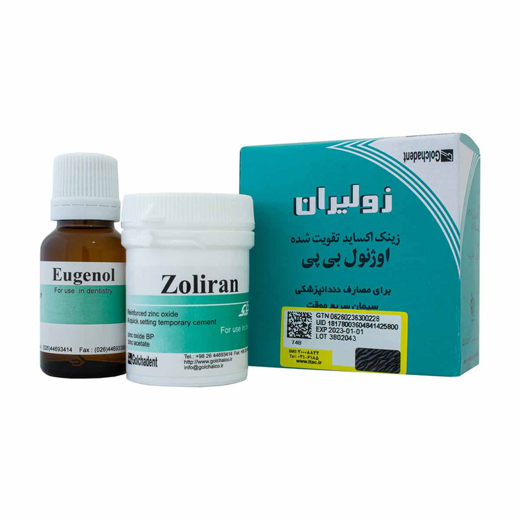 یک سمان با پایه اوژنول و زینک اکساید میباشد. به عنوان یک ماده و یا پرکننده موقت بعد از آماده سازی دندان و تراشیدن قسمتهای پوسیده دندان کاربرد دارد. خاصیت روان شدگی و قدرت تحمل فشاری آن در زیر مواد ترمیمی فوقالعاده است به همین دلیل به عنوان لاینر، عایق حرارتی و شیمیایی محسوب میگردد. زمان شروع سخت شدن ۳ تا ۴ دقیقه بعد از اختلاط صورت میگیرد. زولیران گلچای به صورت ۳۰ گرم پودر و ۱۸ میلیلیتر اژونول عرضه میگردد.